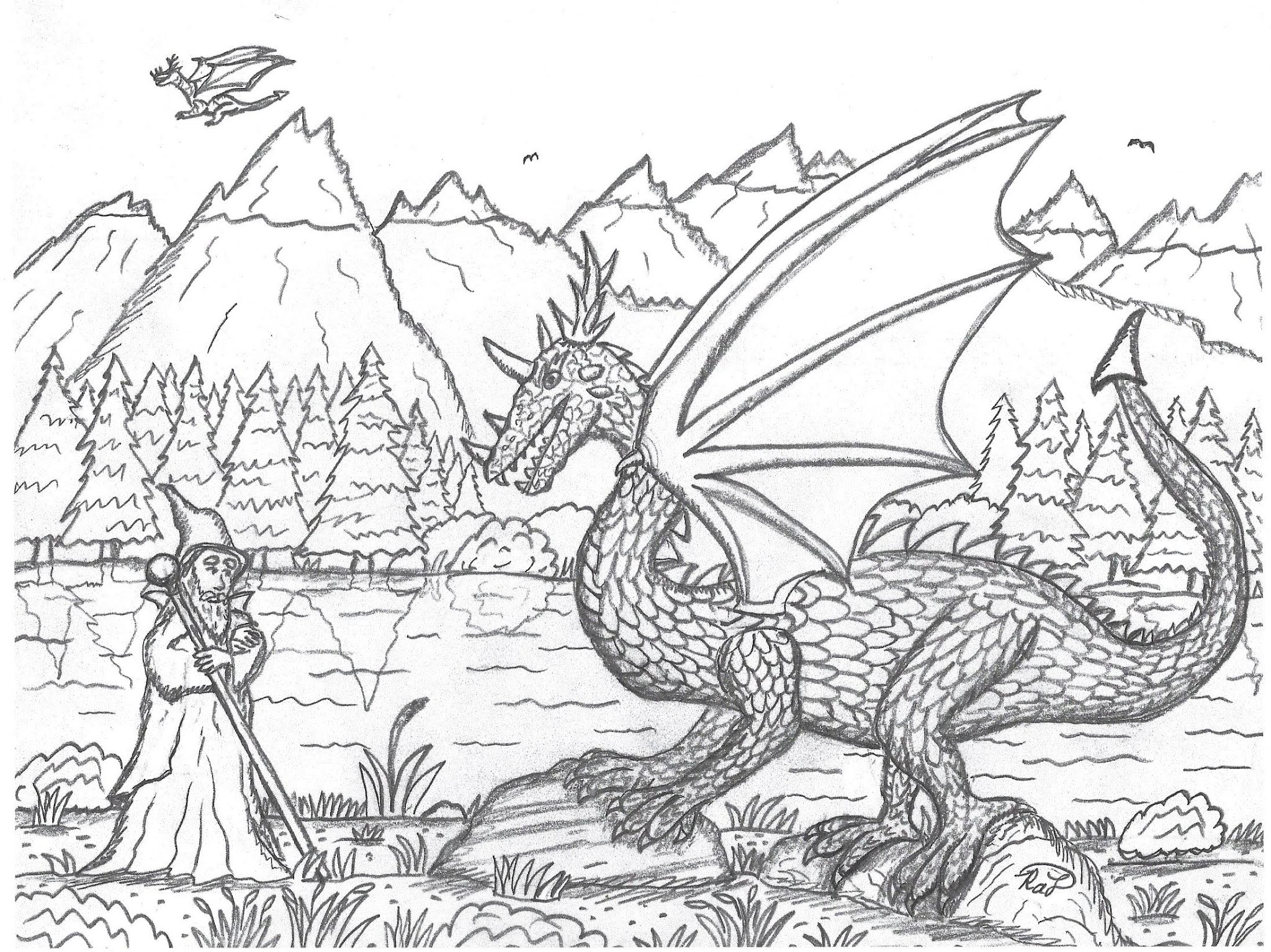 NOTE: This new dragon drawing, in printable form, can be found by clicking on the button that says: Fantasy, Myths, and Circus. Then scroll to the bottom of the drop-down menu. Below on this page, I am posting a few other dragon drawings. They are found, in printable form, further up the same list. So, the below drawings are older drawings from previous posts on this blog. Have fun coloring!