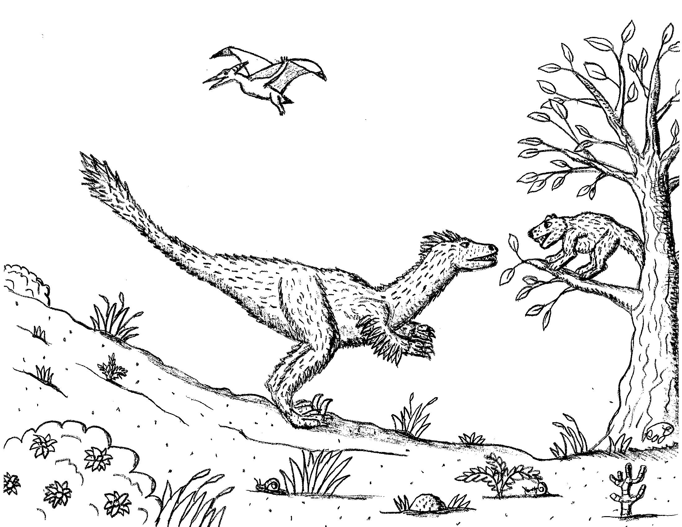 Much evidence has been uncovered in the past several years on raptor dinosaurs. They may have all had feathers. There is some evidence that some raptor species had larger teeth as well. Raptors, like the Dromeosaurs, were among the most intelligent of dinosaurs. Troodon, as seen in the second drawing, was a Dromeosaur. It is thought to possibly the MOST intelligent of the dinosaurs.